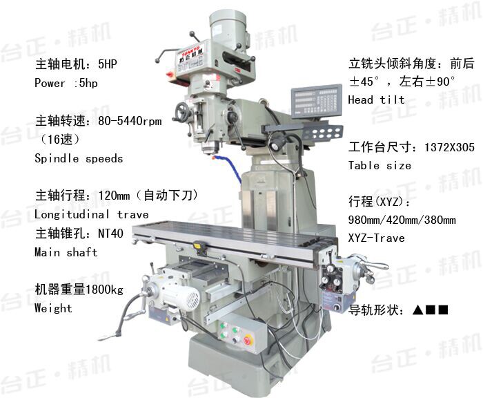 拓正5號(hào)銑床技術(shù)參數(shù)圖解: